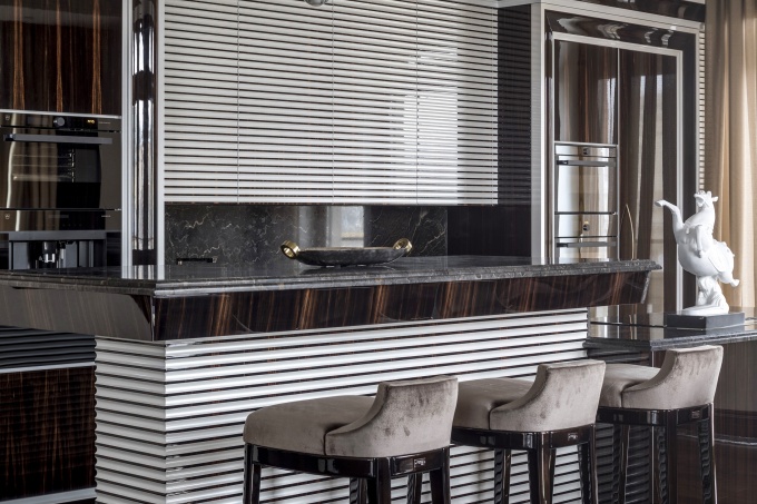 Заказчики архитектора Александра Кривицкого постоянно живут за городом и квартиру в Москве они приобрели для временных остановок, если наскучит загородная жизнь. Задачу сформулировали просто: они хотели подучить комфортабельное пространство для отдыха в городе. Александр Кривицкий предложил обыграть интерьер как люксовую кают-компанию с продуманной эргономикой для 1-3 человек.