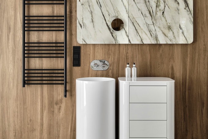 Чем больше будет использовано свежих идей и рациональных решений в процессе обустройства комнаты, тем вероятнее, что владелец дома будет чувствовать себя в обновленном помещении комфортно. Если сократить количество цветов отделки до двух-трех можно добиться потрясающего внешнего вида помещения любого типа. Изысканно смотрятся интерьеры санузлов в стиле фьюжн и в сочетании с индустриальным дизайном. К примеру, в условиях городской квартиры достаточно элегантно выглядят зеркальные панели с контурной подсветкой.