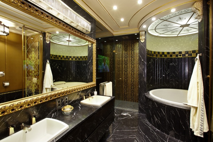 Для увлеченных яхтенным спортом заказчиков архитекторы спроектировали квартиру в стиле роскошной яхты. В ее оформлении они использовали весь арсенал средств, подчеркивающих стилистику квартиры: роскошное полированное красное дерево, окна-иллюминаторы, хромированные детали и декоративные элементы с морской символикой.