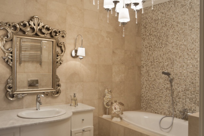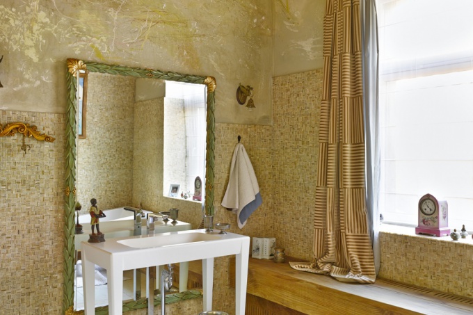 Стены оформлены декоративными штукатурками, которые имитируют камень. Строгость интерьеру добавляет использование природных оттенков: серых, бежевых и коричневых цветов.