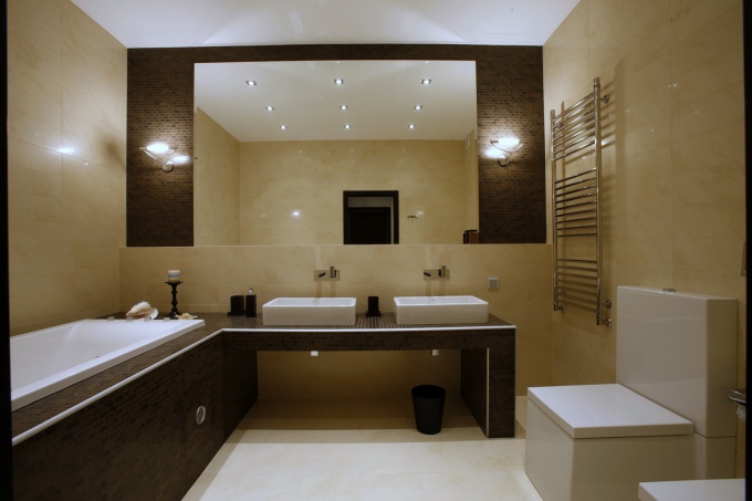 Цветовая палитра строится на контрасте белого и черного, однотонных финишных отделок стен и натурального камня. Несмотря на аскетичный декор в оформлении присутствует натуральный мрамор, гранит, металлизированная мозаика, черное закаленное стекло и древесина зебрано.