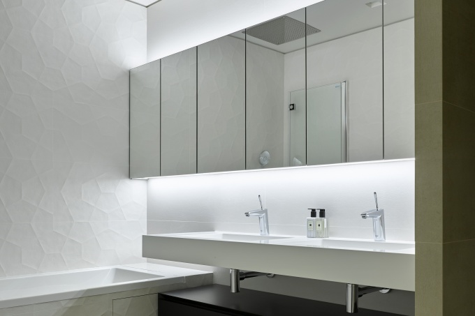 «Заказчик пригласил нас задолго до покупки квартиры для консультации, - рассказывает архитектор Арсений Каинский. - В доме продавалось несколько свободных квартир, поэтому ему было важно понимать потенциал и планировочные возможности, чтобы не ошибиться в выборе. Мы предложили оптимальный вариант для молодой семьи с перспективой роста, но даже в этом случае столкнулись с очевидными архитектурно-строительными ошибками, которые пришлось исправлять и нивелировать. Например, створки почти всех окон открывались вплотную к потолкам, не оставляя возможности установить даже шторный профильный карниз, не говоря уже о том, чтобы зашить гипсокартонными коробами систему вентиляции и кондиционирования. Это повлекло за собой полную замену окон на стеклопакеты с новой системой открывания и качественными деревянными оконными рамами, которые стали частью интерьера. К недостаткам архитектуры относятся и низкие проемы дверей, которые мы увеличили до 2,5 м при общей высоте потолков 3,4 м. А также то, что застройщик не учел толщину пирога пола в квартирах и вывел чистовой уровень в лифтовом холле и плиту перекрытия в квартире на один уровень, так что пришлось делать при входе в квартиру пандус».