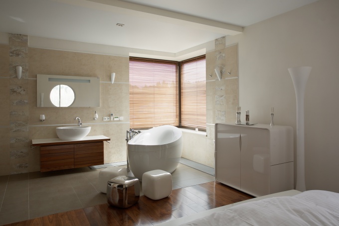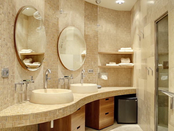 Удобству служат встроенная мебель, декоративные деревянные панели, маскирующие системы хранения, аудиосистему, бытовую технику, зеркала и кожаные обивки, за которыми скрываются гардеробные.