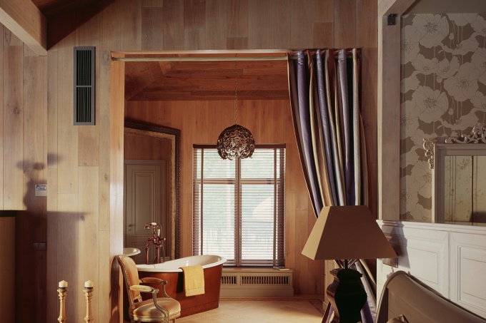Этот удивительный деревянный дом вырос на зеленых полях подмосковного гольф-и яхт-клуба «Пестово». Его облик – дань экологическому европейскому дизайну: фасад выполнен из красного кедра (проект канадской компании Lindal и архитектора Павла Василевича), кровля крыта осиновой дранкой, а внутренне пространство декорировано по-разному преподнесенным деревом – живым, теплым и необычно уютным.