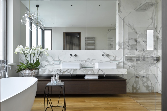 Кроме того следовало создать гостиную-кухню, две ванные комнаты, гардеробную, много-много мест для хранения, и чтобы интерьер при этом выглядел просторным и красивым.