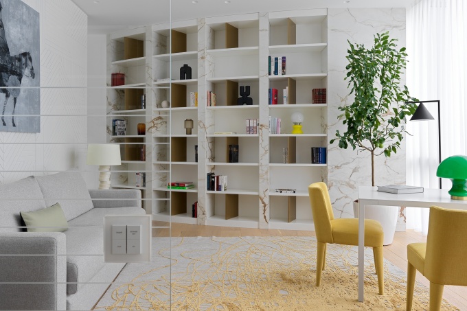 Трехкомнатная квартира площадью 74 кв. м расположена в сталинском доме в Хамовниках, ее хозяйка – топ-менеджер крупной компании, человек с сильным характером, исключительным жизнелюбием и тонким чувством юмора. При выборе нового жилья ее вдохновил вид из окон на комплекс Новодевичьего монастыря, который и стал отправной точкой при разработке идеи оформления квартиры. «В этом проекте мы постарались совместить эстетику дома, построенного в середине XX века, с настроением спокойного созерцания, которое неизменно вызывают виды неба и куполов соборов. Так родился легкий, теплый и солнечный интерьер с элементами советского ретро», - рассказывает автор проекта.