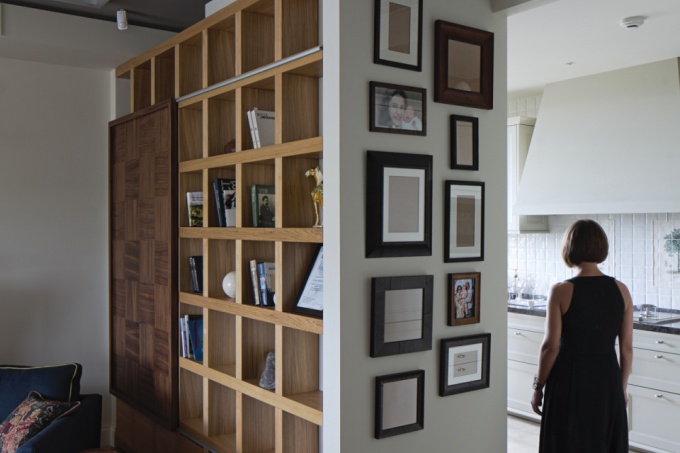 Небольшая квартира расположена в историческом особняке в тихом московском центре. Раньше на ее месте находилась четырехкомнатная коммунальная квартира. Перед архитекторами была поставлена задача создать уютное жилье для женщины, увлеченной искусством. Следовало сохранить дух быта старомосковской интеллигенции и разместить большую коллекцию живописи, графики, антиквариата и книг, включающую более полусотни картин и театральных эскизов.