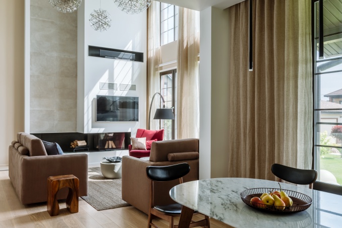 Архитектор Максим Новиньков спроектировал технологичный и эстетичный интерьер в малоэтажном жилом комплексе «Снегири Эко» рядом с парком и озером.