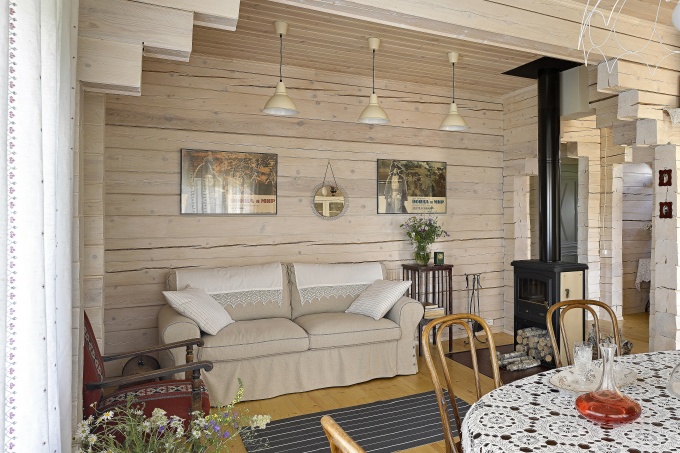 Гостеприимная семья пригласила дизайнеров Дину Косточку и Нину Биркадзе оформить небольшой деревянный дом в Калужской области. Построенный из оцилиндрованного бревна гостевой 2-х этажный домик площадью 110 кв. м изначально имел хорошую архитектуру и планировку. Окна, обращенные в сад, стеклянная терраса и настоящая русская печка – в нем было все для хорошего отдыха.