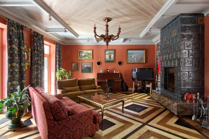 Любителям экстравагантных решений и эклектики «деревенский» стиль однозначно покажется скучным, а вот людям, которые стремятся к уединению и домашнему уюту, данное направление придется по душе. Экспериментаторам можно посоветовать оформить интерьер гостиной комнаты в стиле китч, который сегодня пользуется огромной популярностью у пресытившихся традиционными решениями владельцев домов.