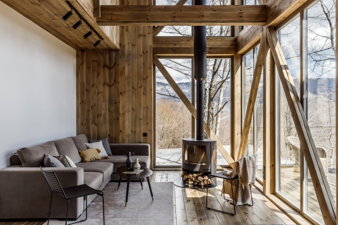 Семейная пара из Нижнего Новгорода с тремя маленькими детьми и котом мечтала о домике в Сочи, своего рода даче, где можно проводить отпуск, а в перспективе – отдыхать на пенсии. Для этих целей заказчики выбрали небольшой двухэтажный дом с потрясающими природными видами. Вписанную в горный склон современную постройку с панорамными окнами и деревянной отделкой в рустикальном стиле спроектировал архитектор Александр Подрепный, а оформлением интерьеров занималась дизайнер Жанна Наволоцкая.