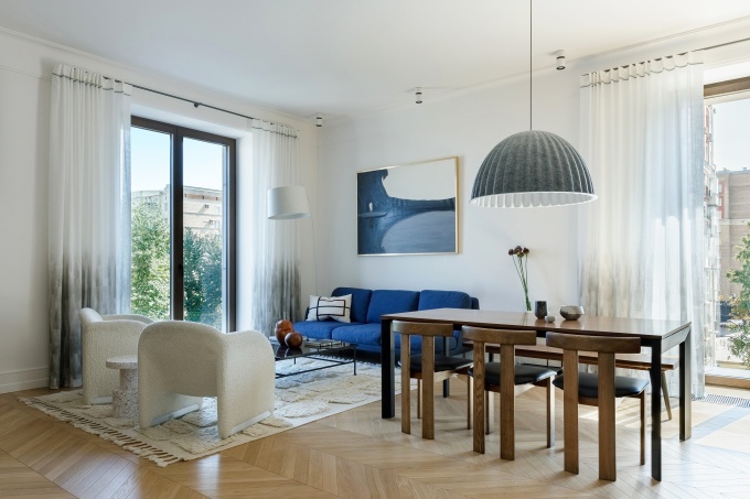 Заказчица, молодая и активная женщина с хорошим вкусом и насмотренностью, коллекционирует современное искусство. Поскольку коллекция разрослась, она мечтала деликатно интегрировать ее в жилое пространство и поставила перед дизайнером задачу создать харизматичный и уютный интерьер с артистичной атмосферой.