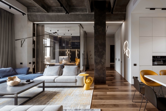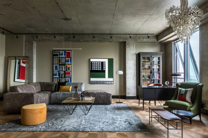 Для молодой семейной пары дизайнеры студии CARTELLE DESIGN оформили трехкомнатную квартиру в московском жилом комплексе Loftec. Они объединили три отдельных апартамента в функциональное жилое пространство с монохромной палитрой, брутальными фактурами и модными фишками. Заказчики хотели интерьер в стиле лофт, поэтому с энтузиазмом восприняли открытый бетон, металл, камень и стекло, которые вместе позволили создать интерьер с проницаемой структурой – современный и очень удобный для жизни в мегаполисе.