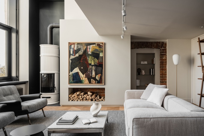 Квартира была в убитом состоянии, последние двадцать лет в ней никто не жил, снаружи и внутри росли деревья, кирпич осыпался и по помещениям гулял ветер… Осуществить сложную реконструкцию и организовать непростое пространство заказчица пригласила архитектора Бориса Уборевича-Боровского. Он убрал все наслоения, и, бережно сохранив старую основу, создал внятную структуру пространства. «Проект выпал на время карантина, стройка началась в марте 2020 года, - рассказывают авторы проекта. – Квартиры в старом жилом фонде требуют особого внимания. При расчистке от строительного мусора, проектировании и прокладки коммуникаций выявлялись «больные» места. Особенного внимания требовала инженерия, в частности отопление последнего этажа, виляющие от соседа к соседу трубы, водоснабжение, устройство канализации (в доме газовая колонка) – все эти сложности нужно было решить, чтобы жить комфортно».