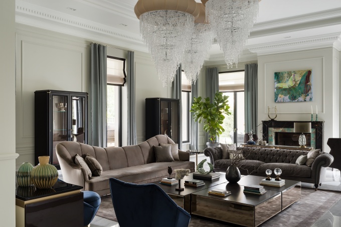 «Это наш второй проект для заказчиков. Ранее мы работали над проектом небольшого частного дома. Им понравилось направление неоклассики, и мы постарались воплотить сходную стилистику с учетом архитектуры комплекса. Основная идея интерьера – продолжение яркого визуального ряда, заданного рисунком фасада», - рассказывает дизайнер.