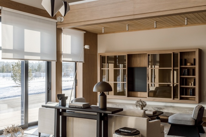 Заказчица – успешная бизнес-леди и генеральный директор крупной компании – к оформлению собственного загородного дома подошла с позиций топ-менеджера. Выбрала несколько дизайнерских студий и провела среди них конкурс на концепцию трех зон: холла, гостиной и спальни.