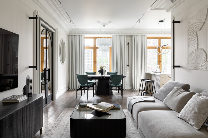 Заказчик живет на два города: работает в Москве, а отдыхает с семьей в Санкт-Петербурге. Он поставил задачу создать классическую, но нестандартную квартиру: живую, воздушную с современным прочтением традиционных решений. Важными критериями были легкость, воздушность пространства и наличие ярких акцентных элементов. Дизайнер соединила классические принципы и современную эстетику, предложив свое прочтение петербургской классики. Получился живой и воздушный интерьер, с яркими деталями и скрытыми смыслами.
