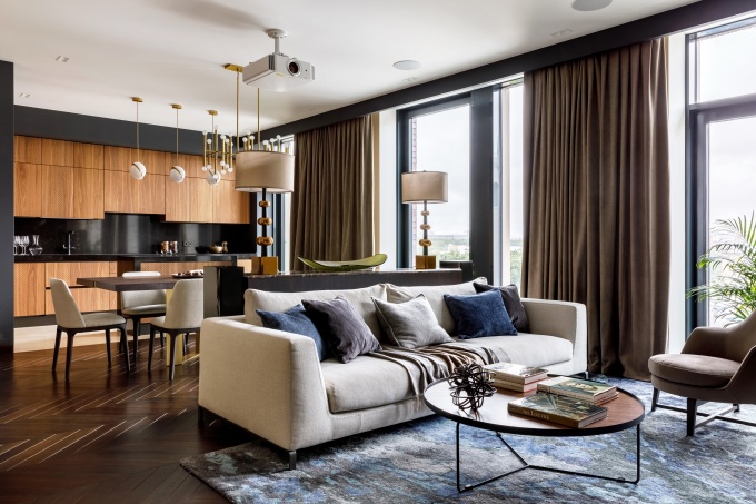 Основной идеей стал статусный интерьер с качественными отделочными материалами, мягкими фактурами и обволакивающей атмосферой… Ничего лишнего, только респектабельность и комфорт.