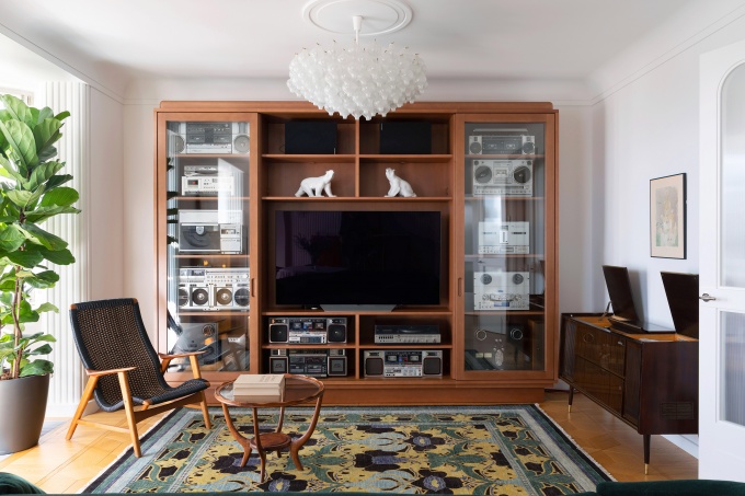 Дизайнеры Светлана Озерова и Наталья Юнг любят работать с винтажными и коллекционными предметами. Наглядный тому пример их проект квартиры площадью 132 кв. м для увлеченных коллекционеров абсолютно разноплановых редкостей: магнитофонов и старых ТВ, старинных икон, живописных работ и знаковых советских предметов.