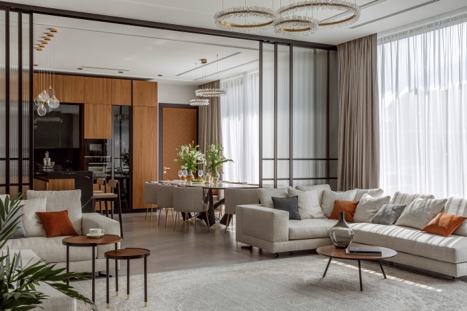 Эта квартира в новой столичной высотке – уже третий совместный проект заказчиков и дизайнера Виктории Вольвач. Их основным пожеланием стало, чтобы интерьер был не похож на предыдущие и отражал новый этап жизни и личностного роста.