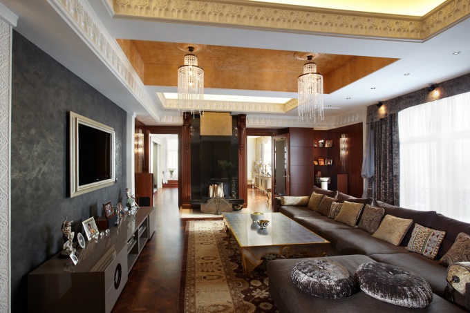 Архитектор подключился к работе над проектом на стадии, когда дом уже стоял, а планировка была четко обозначена. Перед ним стояла задача создать буржуазный интерьер в стиле ар-деко.