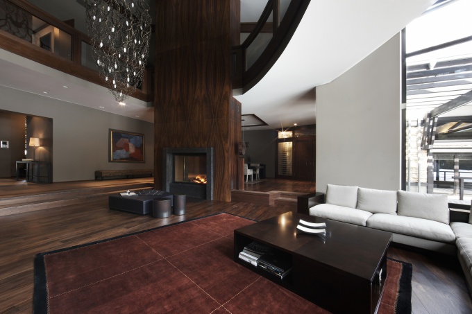Архитектура дома – с простыми объемами, лаконичной геометрией и высокими витражами – предполагала столь же современное внутреннее решение. Однако заказчики поставили задачу сделать интерьер в стиле ар-деко. Но впрямую цитировать исторический стиль архитекторы не стали, в качестве базы они взяли принципы минимализма и уже к нему добавили элементы ар-деко.