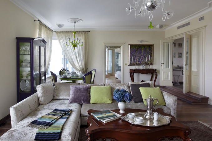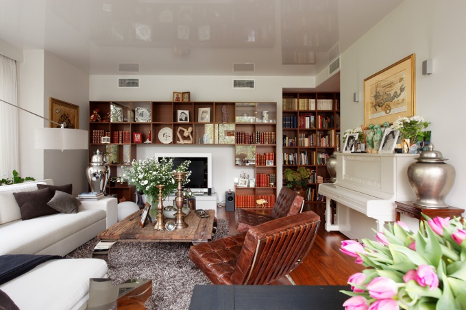 Заказчики несколько лет провели за городом, поэтому для жизни в Москве они выбрали квартиру на среднем этаже с панорамным остеклением и видом на кроны деревьев. В качестве основной стилистики они сделали ставку на лаконичный европейский дизайн с яркими декоративными акцентами, брендовой мебелью и антикварными предметами.