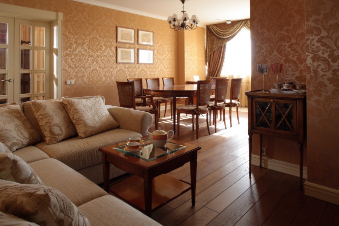 Квартира для пожилой семейной пары объединена из двух квартир. Заказчики хотели, чтобы их жилье было уютным, цветовую гамму они определили как охристо-золотую с обилием натурального дерева.