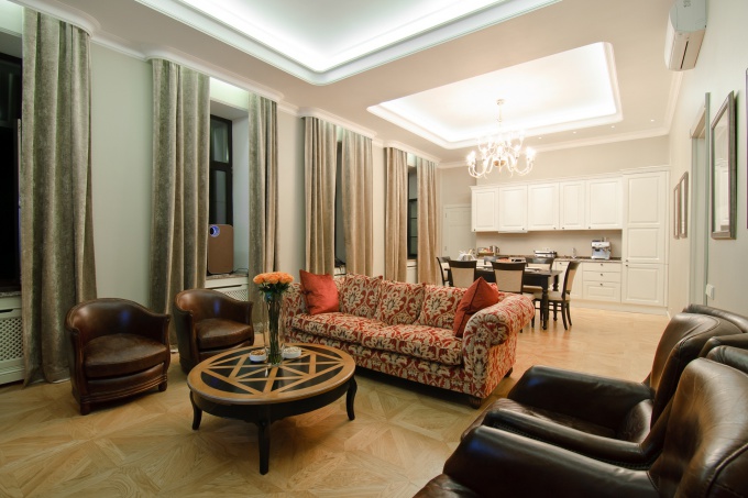 Авторам проекта следовало создать парадный интерьер в классическом стиле. Заказчики видели свое новое жилье респектабельным и комфортным. Чтобы соединить внешнюю нарядность и домашний уют, дизайнеры предложили торжественную классику и беспроигрышную бежево-золотую палитру.