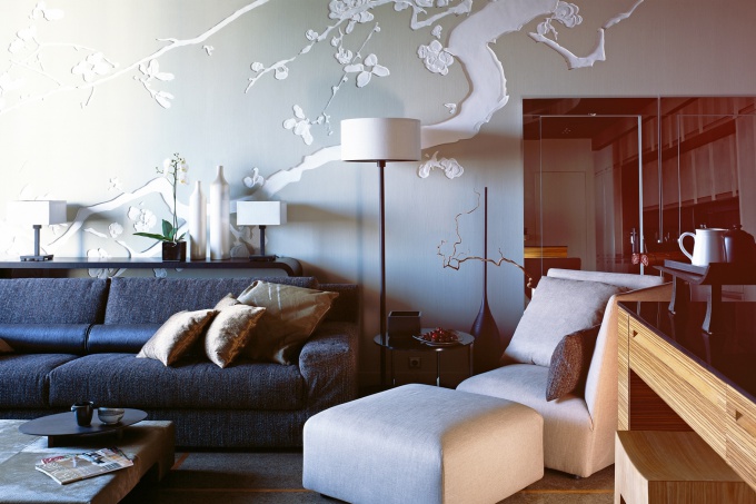Интерьер создан для человека, увлеченного культурой Востока. В качестве основной линии выбрана японская стилистика, адаптированная под жизнь европейца. Идея интерьера – японский ландшафт, изображающий вечер на берегу пруда.