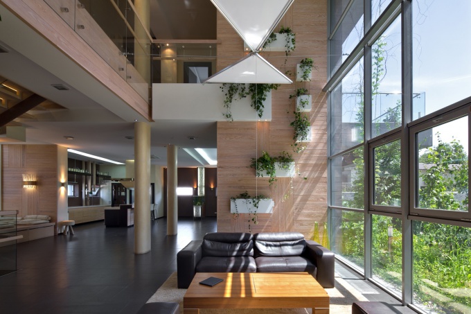 Дом был построен в минималистичном ключе из бетона и стекла, поэтому архитектор предложила решить интерьеры в стиле комфортного для жизни экологического минимализма и сделать полноправной частью интерьерного контекста природу.