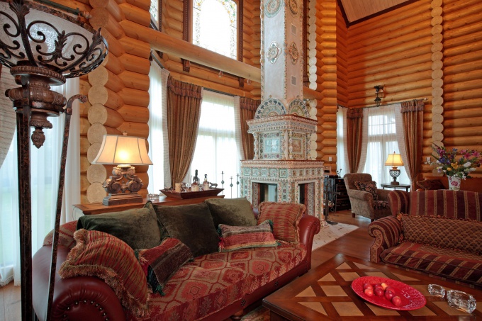 На сибирских просторах был построен большой и статный дом из оцилиндрованного бревна. Задачу заказчик сформулировать скупо, но точно: русский стиль, не изба и не усадьба, непременно с печью и массивной лестницей. Чтобы избежать лубка или китча, автор проекта взяла за основу творчество знаменитых мастеров-интерпретаторов русского традиционного искусства: Билибина, Васенцова и создала яркую и стильную декорацию в псевдорусском стиле.