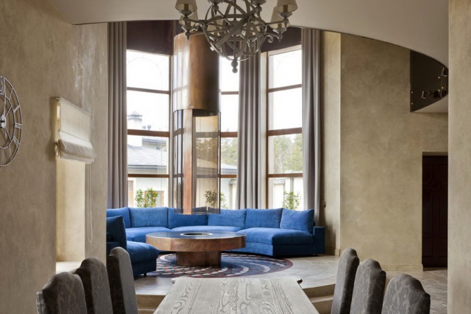 Этот похожий на эксцентричный замок дом (проект здания – архитектор Александр Пономарев), оформленный архитектором Романом Петинцевым, предназначен для приема гостей, встреч с друзьями и отдыха. В его ярком облике парадность ар-деко соединилась с брутальностью средневековой крепости и технологичностью стимпанка.
