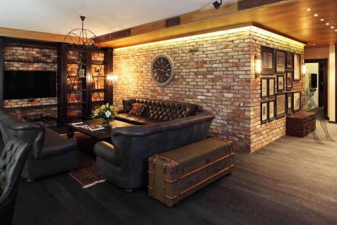 Квартира в стиле лофт расположена в новом монолитно-кирпичном клубном доме в историческом центре Москвы. Для семейной пары с ребенком архитектор Руслан Айдаров спроектировал интерьер в стиле постиндастриал с настоящими кирпичными стенами, кожаной американской мебелью, авторскими изделиями из темного дерева и дизайнерскими аксессуарами. Они создают образ модного европейского лофта.