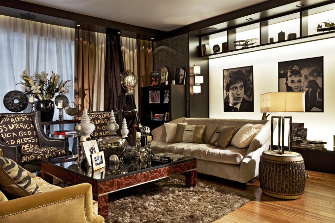 Ключом к декоративному образу пространства стало увлечение заказчика кинематографом.