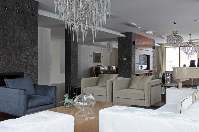 С пожеланием реконструировать ряд помещений в уже существующем доме владельцы подмосковного особняка обратились к декоратору Кириллу Истомину. Серьезные изменения коснулись бассейна. Заказчики поняли, что совсем им не пользуются и предложили превратить помещение площадью в 100 кв. метров в парадную гостиную, в салон, где можно устроить официальный прием или провести вечер в кругу друзей.