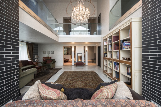 Заказчица приобрела уже готовый дом в подмосковном коттеджном поселке. Кирпичный трехэтажный дом был частично отделан изнутри: серые стены, кирпичные фрагменты, стеклянные перегородки – все отсылало к стилистике хай-тек. Однако на вкус хозяйки его современные интерьеры выглядели слишком строгими и неуютными. Именно с пожеланием сделать дом более теплым и привнести уют, она обратилась к дизайнеру Юлии Маркос, которая в свое время уже декорировала ее московскую квартиру и загородный дом.