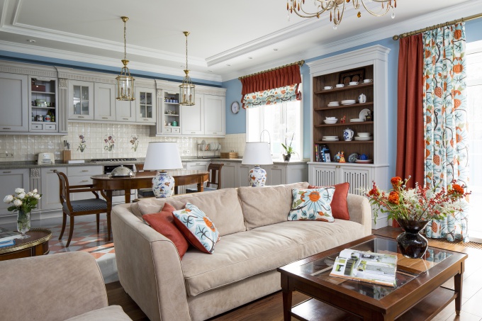 Ноты Прованса, цвета Тосканы, прихотливые линии ар нуво, строгость шале – все сливается в сложную интерьерную композицию.
