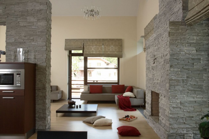 Этому служит высокий каменный фундамент, широкие террасы, которые зрительно увеличивают объем построек и разноуровневая скатная кровля. Она покрыта цементно-песчаной черепицей двух оттенков, что придает архитектуре этническое звучание. Кроме того, в отделке фасадов обоих домов использовалась тонированная доска и искусственный камень, имитирующий песчаник с грубо обработанной поверхностью.