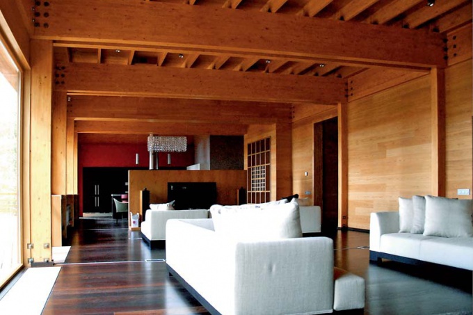 Он выполнен из бруса: живого и теплого материала, который больше всего подходит для дома, предназначенного для семейного отдыха на свежем воздухе. Согласно задумке архитектора, дом ни в коем случае не должен был выглядеть старорусской избой, баварским домиком или альпийским шале. Больше всего дом похож на традиционные постройки Нормандии и Фландрии.