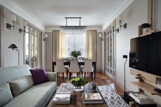 Для известной певицы и композитора Алены Свиридовой декоратор Татьяна Горшкова создала элегантный интерьер московской квартиры. Дизайн интерьера согласуется с классической архитектурой здания. Эклектичное пространство с высокими потолками и удлиненными окнами выглядит светлым, легким и воздушным, оно оптимально для жизни и творчества.