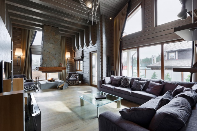 Для взыскательных заказчиков с прекрасным вкусом и любовью к плотной теплой цветовой гамме художник Марина Путиловская оформила деревянный дом, который неразрывно связан с природой. Деревянный особняк площадью 550 кв. метров находится в поселке, спроектированном с расчетом того, что его жители будут большую часть времени проводить на природе.
