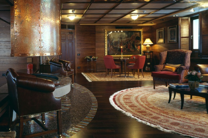 Перед архитекторами стояла задача создать гостевое пространство для отдыха и неформальных встреч руководства компании. Выбор был сделан в пользу уютного интерьера с обстановкой, напоминающей домашнюю. Комната заняла целый этаж с верандой и получилась похожей на гостиную в коттедже.