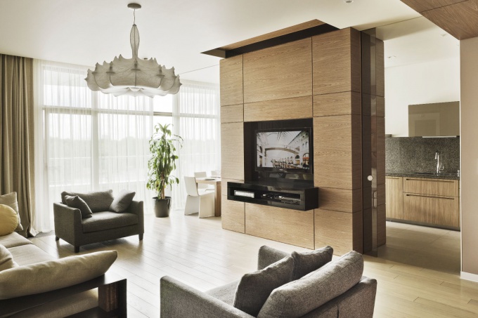 Дом стоит на берегу Химкинского водохранилища в кружении сосен, поэтому архитектор создал видовой интерьер, оформленный в приглушенных природных тонах и гармонирующий с окружающим ландшафтом.