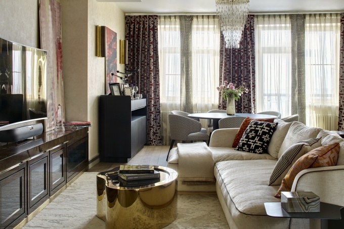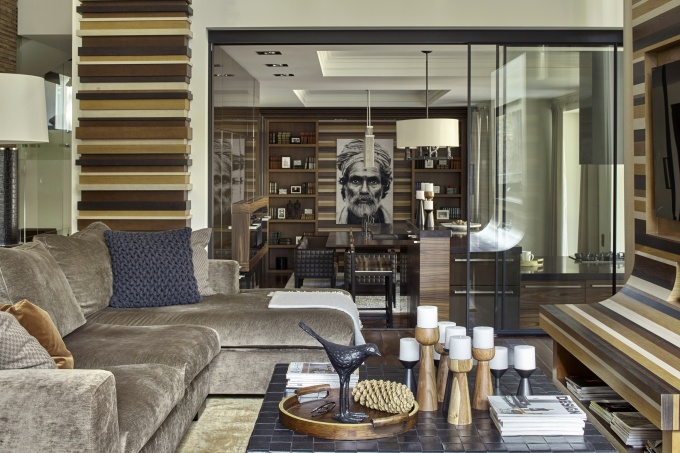 К оформлению квартиры площадью более 500 кв. метров заказчики подошли серьезно: они поставили задачу создать респектабельное и то же время динамичное пространство, которое могло бы меняться в зависимости от настроения, и провели тендер, в котором приняли участие несколько столичных архитектурных бюро.