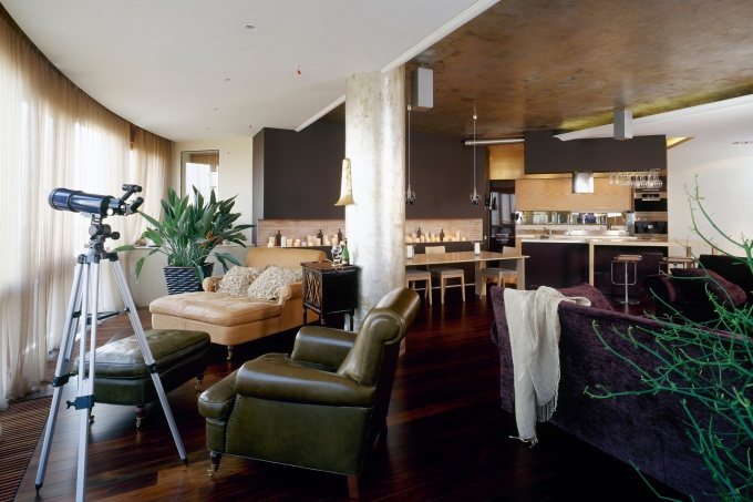 Владелец квартиры – большой любитель путешествий – хотел, чтобы его новое жилье было по духу не московским. Архитекторы предложили сделать уютный, теплый интерьер, напоминающий о тропических странах.