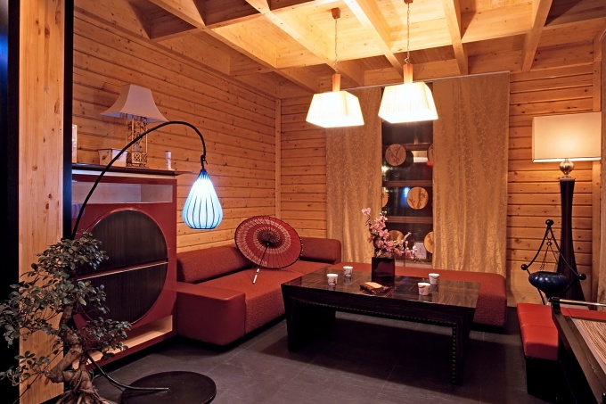 В облике постройки читаются все основные черты японского жилища: сложной конструкции кровля с поднятыми к небу углами, резные кронштейны, поддерживающие большой вынос кровли, опоясывающие дом галереи и веранды, характерный орнамент декоративных элементов фасада, а также традиционные красные и зеленые цвета в отделке.