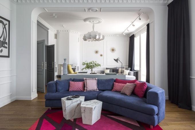 Для семейной пары с взрослой дочерью дизайнер Дарья Харитонова оформила квартиру в классическом стиле и наполнила ее цветом, столь необходимым в московском климате. «Речь о цветном интерьере зашла на первой же встрече; заказчица любит яркие акценты и смело их использует в одежде и аксессуарах, о зеленых стенах она заговорила сама. Я была рада столь вдохновляющему проекту, для меня работать с цветом – одно удовольствие», - отмечает дизайнер.