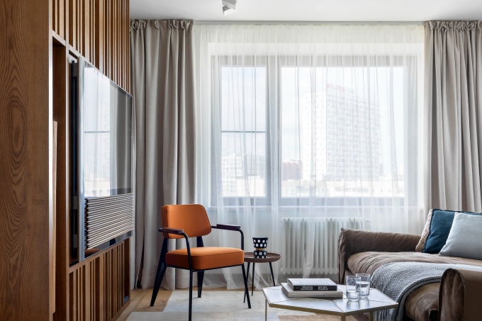 Его дизайнер обыграла как элегантный микс в стиле contemporary, сродни апартаментам в высотках Манхэттена.