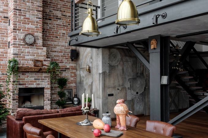 Заказчик дизайнера Ольги Рудаковой – заядлый путешественник неравнодушный к индустриальному дизайну, вещам с историей и винтажу – выбрал себе нестандартную квартиру. Двухэтажные апартаменты площадью 200 кв. м с большой открытой террасой расположены на последних этажах реконструированного старого промышленного здания на набережной Москвы-реки.